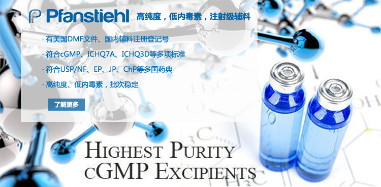 “熱烈祝賀Pfanstiehl的注射級甘氨酸Glycine(G-140)喜獲CDE登記號F20250000403, 這是Pfanstiehl產品獲得的第18個CDE登記號!”甘氨酸在醫藥輔料制劑中應用廣泛,, 可作為緩沖劑,增溶劑,穩定劑等,具有諸多優勢。Pfanstiehl秉承一貫高品質理念,為滿足全球生物制藥行業對于高品質甘氨酸的需求,隆重推出的注射級甘氨酸Glycine (G-140), 具有超高純度,超低內毒素,超低金屬殘留的特點,單獨檢測29種金屬離子,并且新增DNA,RNA,DNA酶,RNA酶和脂肪酶,亞硝酸鹽等多項質量指標的檢測,符合多國藥典規定(USP, EP, BP, JPE, ChP),可用于生物治療性藥物和疫苗的生產。產品信息:· 產品名稱:Glycine, High Purity, Low Endotoxin, Low Metals, USP, EP, BP, JPE, ChP (G-140)· 中文名稱:甘氨酸· 分子式:C2H5NO2· 分子量:75.07 g / mol· CAS號:56-40-6· 產品貨號:G-140產品特點: · 超高純度,超低內毒素,超低微生物含量,超低金屬雜質殘留· 質量指標新增DNA,RNA,DNA酶,RNA酶,脂肪酶和亞硝酸鹽檢測· 符合多國藥典:USP, EP, BP, JPE, ChP· 符合ICH Q3D標準· 符合GMP標準· 已獲DMF和CDE登記號 產品應用:· 緩沖劑· 穩定劑· 增溶劑如果您對Pfanstiehl注射級別Glycine G-140感興趣,歡迎聯系Pfanstiehl 中國區代理商北京西美杰科技有限公司獲得如下詳細的產品概況說明文件和測試樣品。Pfanstiehl Inc.最新產品系列如下,歡迎聯系北京西美杰科技有限公司獲取100g裝免費樣品。北京西美杰科技有限公司為Pfanstiehl中國代理,為客戶提供完善的技術支持與售后服務。歡迎撥打西美杰客服電話400-050-4006或者登陸網站www_xmjsci_com.qqsswh.com.cn了解更多信息。 更多>